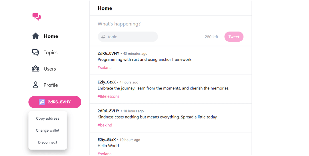 Created a twitter like dapp in solana blockchain
